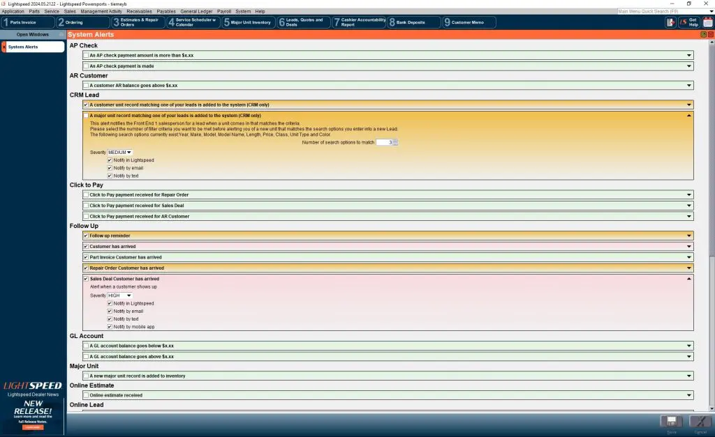 Welcome to “An Insider’s Guide to Lightspeed,” a new blog series designed to help our dealers unlock the full potential of the Lightspeed dealer management solution. In each installment, we’ll highlight lesser-known features that can transform how you use Lightspeed, making you say, “Whoa! Lightspeed Does That?!” Today, we’re diving into System Alerts, a powerful tool to help you work more efficiently and stay on top of critical tasks.
