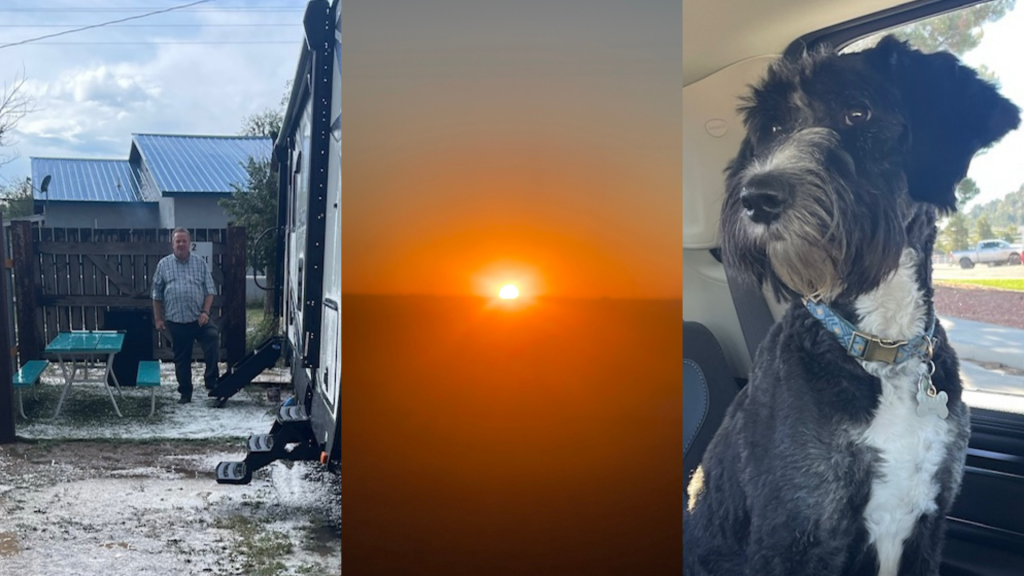 After about 20 minutes, I was convinced all my roof vents were destroyed as well as the rest of my trailer, the storm passed over and we opened the door to see 3 inches of water streaming under our trailer along with 3-4 inches of accumulated hailstones. However, after a thorough damage-control assessment (sorry, I’m retired military), we found that the trailer sustained no damage! In fact, we only lost our Starlink connection for about 3 minutes as this dang thing has its own built-in heater which melted the hail that collected on the dish. Incredible!