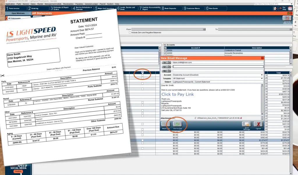 One of the biggest challenges dealers face is ensuring that Accounts Receivable (A/R) balances are paid promptly. When payments lag, it disrupts cash flow and impacts the bottom line. But, as we know, if a process is simple, it’s more likely to be done consistently. That’s why Lightspeed has introduced an innovative tool designed to make A/R payments smoother than ever – meet the “Click to Pay” feature, now available in Lightspeed Accounts Receivable.