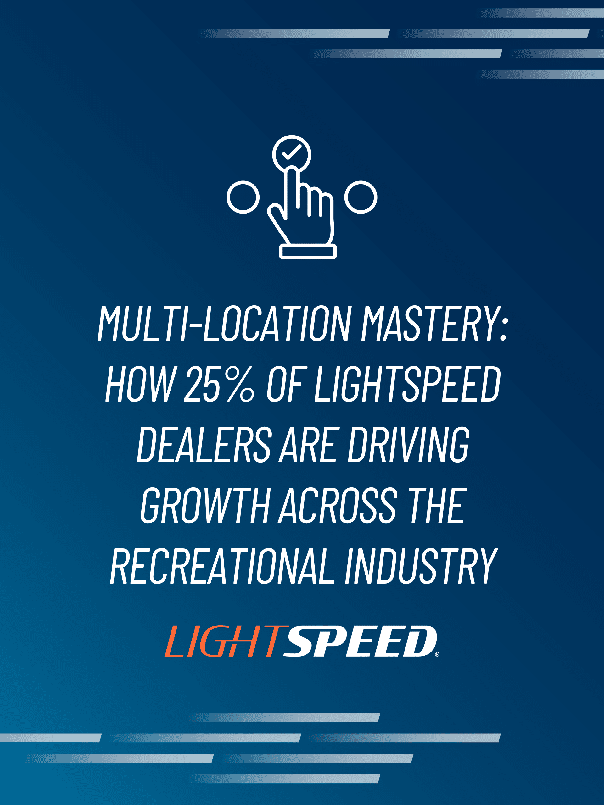 One competitor recently claimed that 1 in 3 of their RV dealers are now multi-location. But here’s the broader truth: 25% of all Lightspeed dealers, across more than 4,500 powersports, marine, RV, trailer, and golf cart dealerships, operate multiple locations. That’s not just one vertical, that’s momentum across the entire recreational industry.